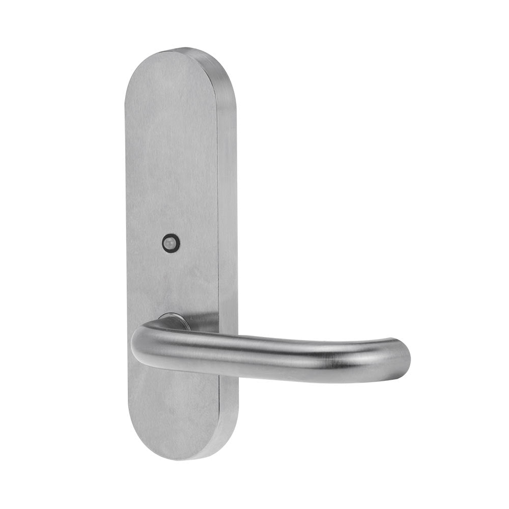 This extended round end plate furniture set from Lockwood is designed for demanding commercial, institutional, and industrial environments. With a sleek satin chrome finish, integrated LED indicator, and ergonomic lever design, it offers both reliability and modern functionality.