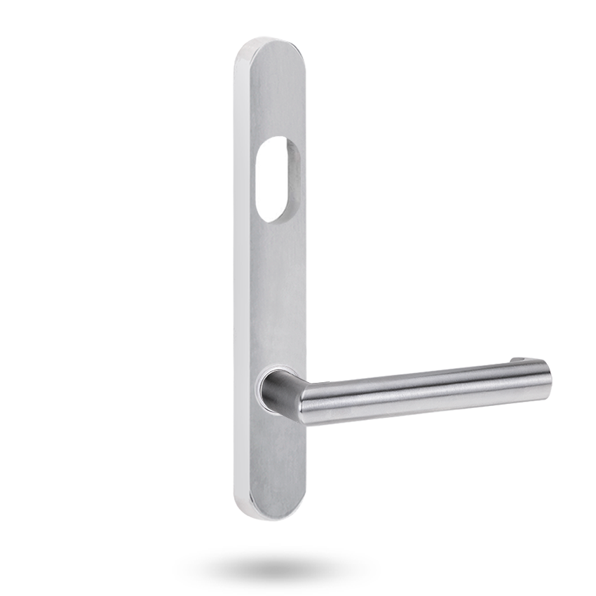 A slim-line, rectangular brass plate that adds style to your choice of lever.